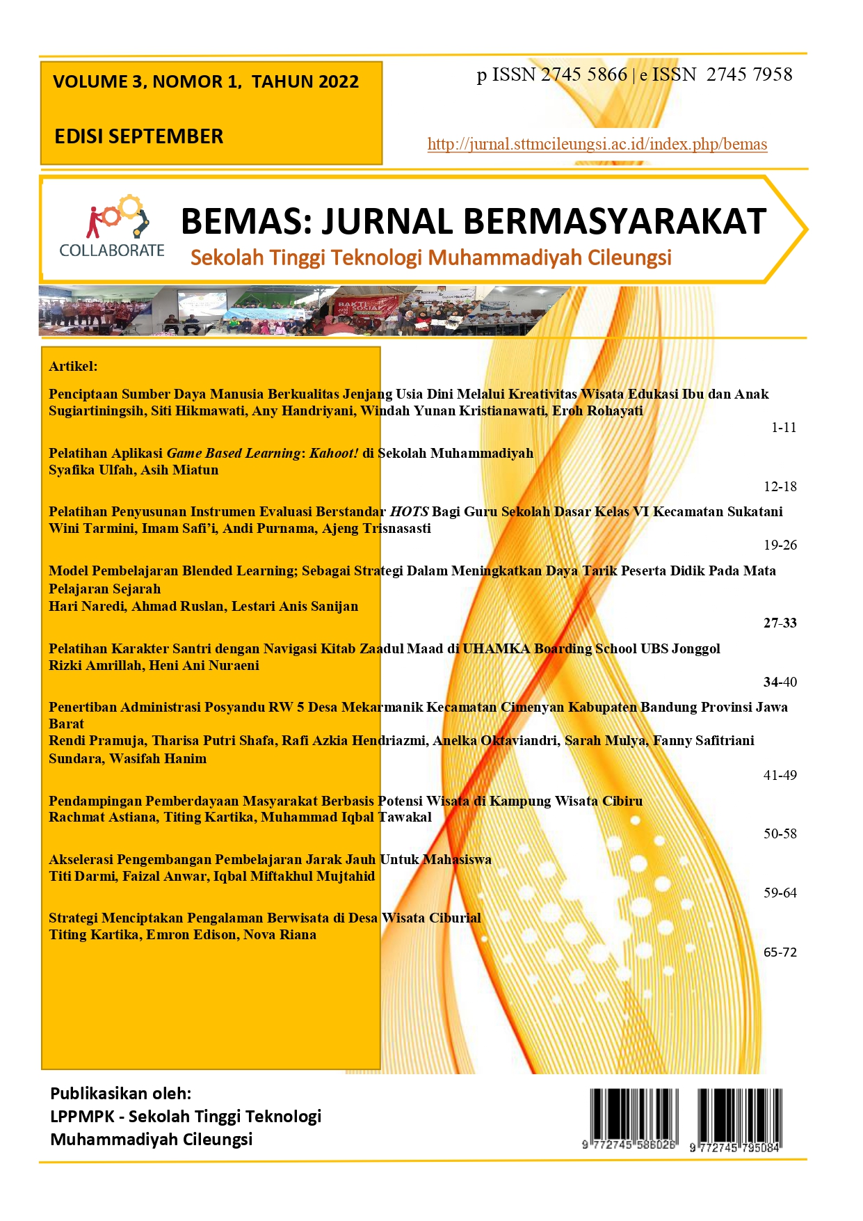 - BEMAS: Jurnal Bermasyarakat Vol 3, No 1, September 2022 Page 65-72 DOI: https://doi.org/10.37373/bemas.v3i1.256 Tanggal Publish 09-08-2022